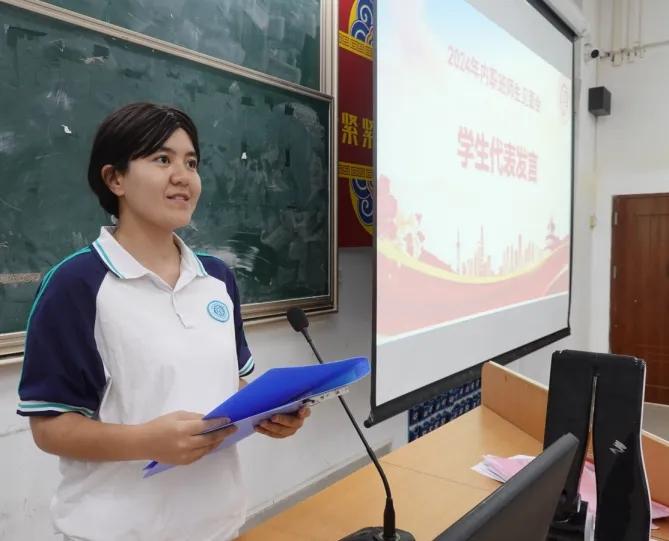 学生代表阿丽丹·阿布拉在发言中,深情地表达了对国家和学校的感激之情。她感谢国家对少数民族地区的惠民政策,感谢老师们的无私奉献和同学们的悉心帮助,并承诺将积极参与民族大团结“五同”融和工程,为实现中华民族伟大复兴的中国梦贡献自己的力量。