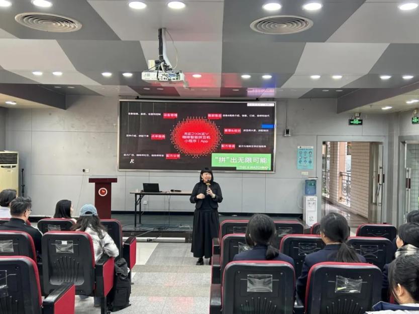 在行业大咖讲座环节,汤锦卿女士详细介绍了XDosing咖啡拼豆机的设计理念、产品特色以及咖啡行业现拼潮流下的技术变革,为在场师生带来了宝贵的行业知识。在“广州旅商诚品杯”咖啡拼豆大赛中,参赛选手们精心进行配方设计与咖啡拼配,经过现场评委的盲测投票,最终评选出了前三名获奖选手。