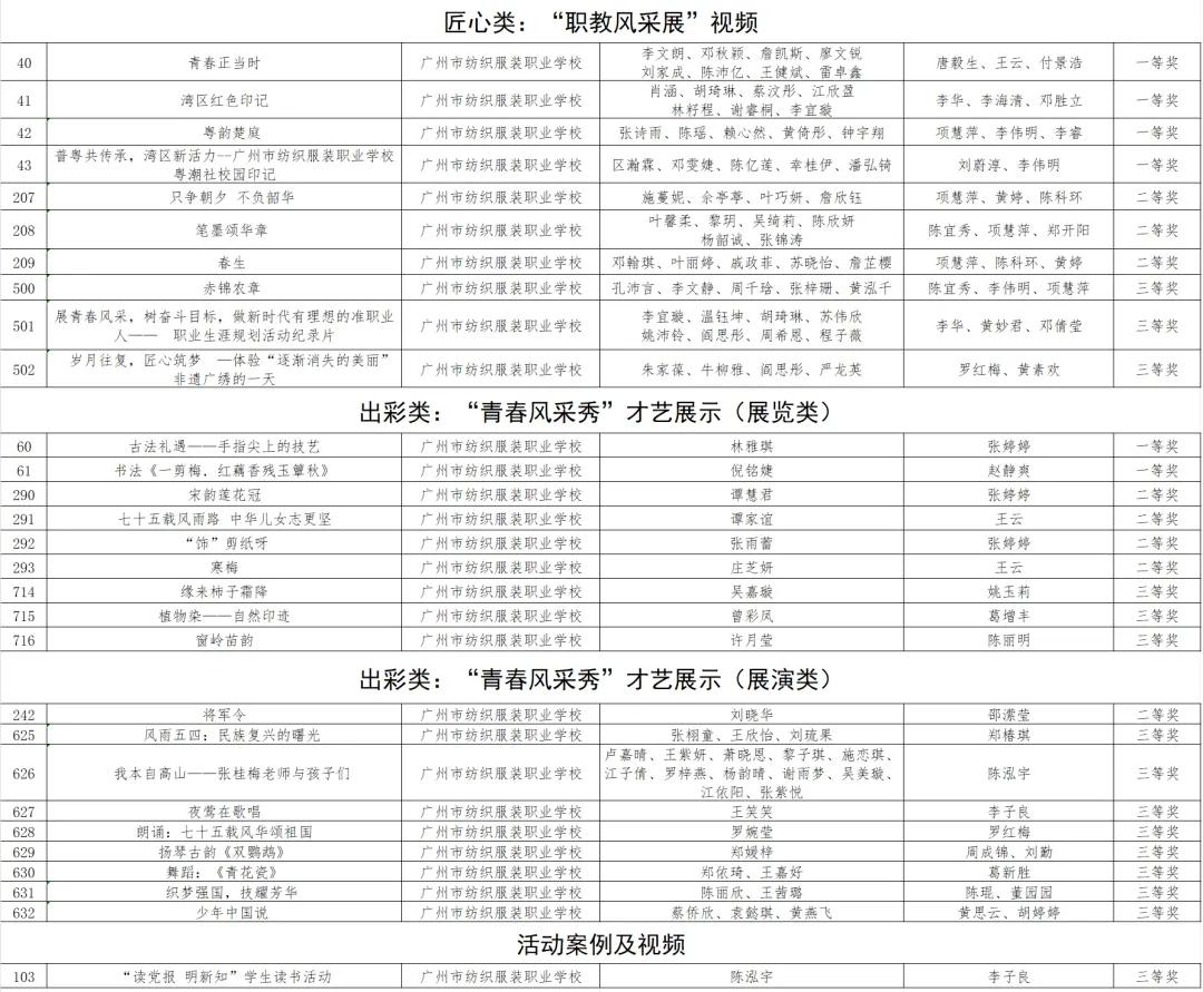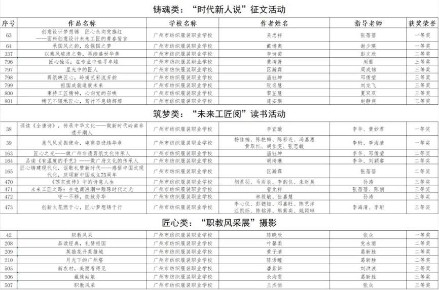 广州纺校获奖名单