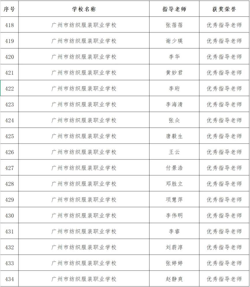 广州纺校优秀指导老师