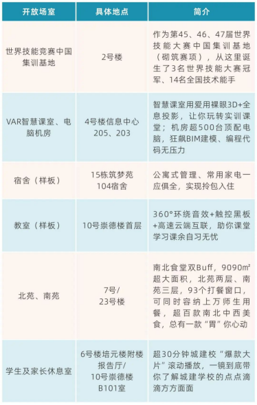 10号楼崇德楼将开展五大专业系部技能展示,名师现场解析建筑、智能制造等前沿领域趋势,学长学姐分享“金专攻略”,帮助考生打破信息差,科学选择专业。