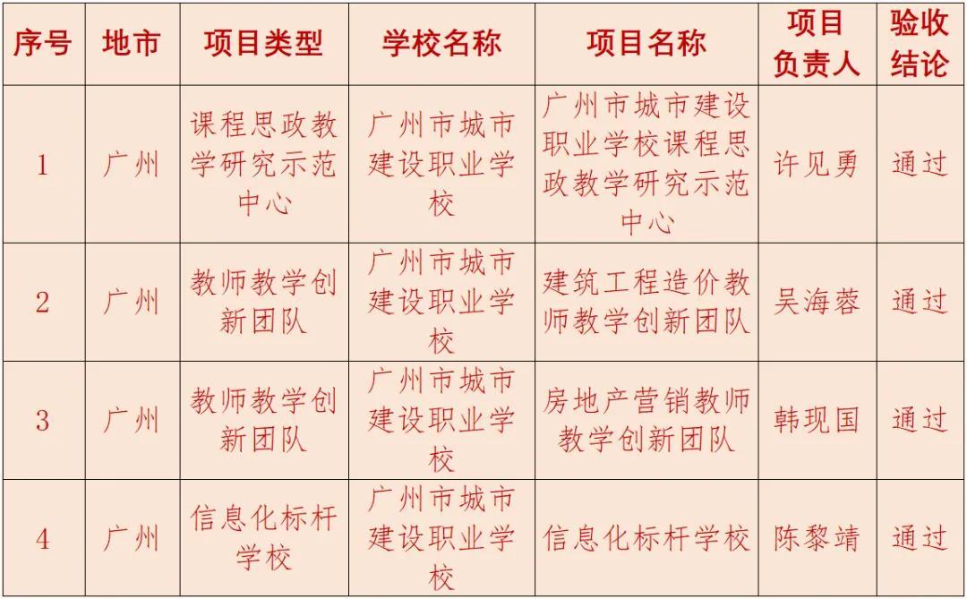 此次通过验收的项目涵盖多个重要领域,具体包括:课程思政教学研究示范中心、建筑工程造价教师教学创新团队、房地产营销教师教学创新团队、信息化标杆学校、虚拟仿真实训基地以及4门在线精品课程。