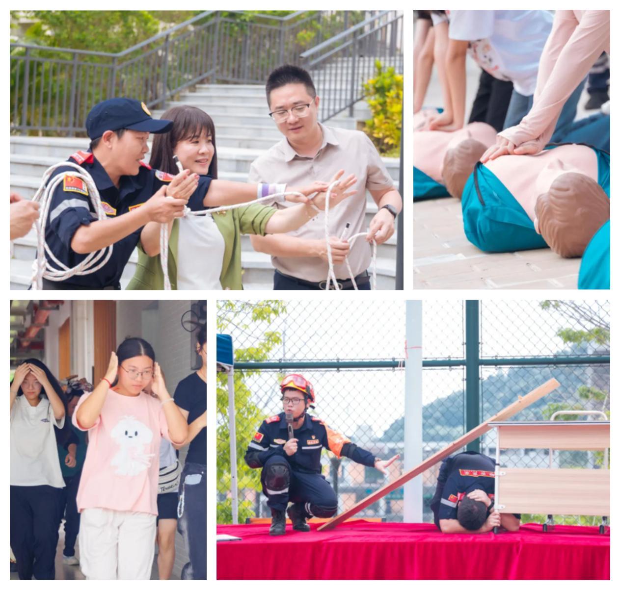 丘毅清书记在总结讲话中强调,防震减灾演练是校园安全教育的重要环节,要求全校以此次活动为契机,持续强化安全意识,筑牢校园安全防线。演练结束后,师生还参与了包括烟道逃生模拟、应急绳结教学、心肺复苏培训等多项实操训练,通过沉浸式体验掌握实用安全技能。