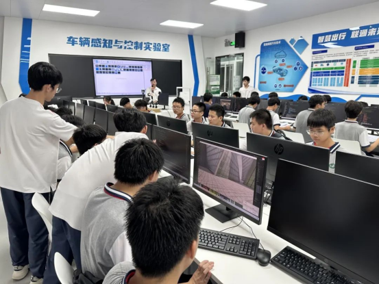 作为广东省首批“中高职贯通培养”试点院校,两校自2024年起在汽车服务与营销等专业开展深度合作。智慧汽车学院张占辉主任介绍,该模式通过课程体系衔接、实训资源共享,已构建起完整的“中职-高职”协同育人机制。在新能源电池实验室,学生们现场观摩了ADAS辅助驾驶系统演示,直观感受职业教育的前沿技术。
