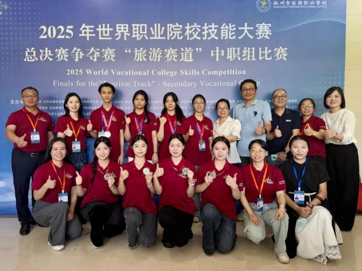 近日,2025年世界职业院校技能大赛总决赛“旅游赛道”中职组比赛在杭州落下帷幕。广州市旅游商务职业学校(简称“广州旅商”)派出两支代表队参赛,分别来自旅游文旅系和酒店管理系,均斩获银奖,成为本赛道唯一一所独揽两枚银牌的中职学校。