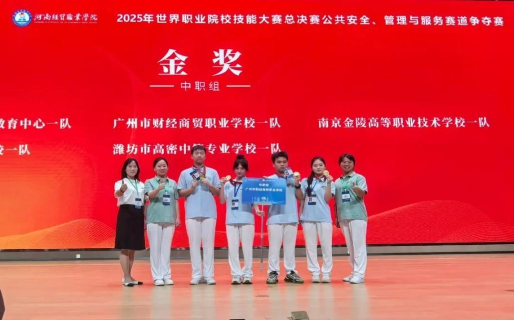 2025年8月25日至29日,世界职业院校技能大赛总决赛“公共安全、管理与服务”赛道在河南经贸职业学院举行。广州市财经商贸职业学校(简称“广州财商”)公共安全系法律事务赛项代表队作为广东省代表队之一参赛,历经两天五个平行组的激烈角逐,最终斩获该赛项金奖,实现学校在该项目中金牌“零的突破”,创下赛事历史最佳成绩。