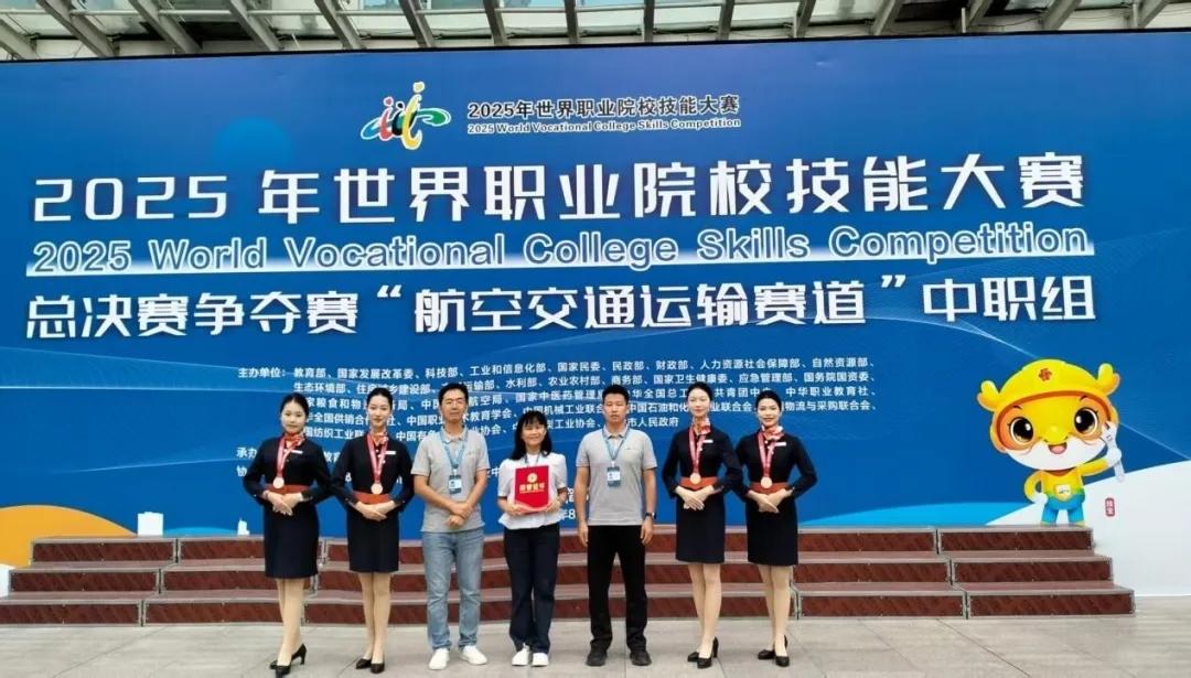 2025年8月25日至29日,世界职业院校技能大赛总决赛“航空交通运输赛道”在四川省简阳市高级职业中学举行。广州市财经商贸职业学校(简称“广州财商”)作为广东省代表队之一,由公共安全系选派航空服务赛项团队参赛。此次系该校首次参与该赛道角逐,在为期三天、共七个平行小组的激烈竞争中,最终荣获小组第四名,斩获铜奖,实现历史性突破。