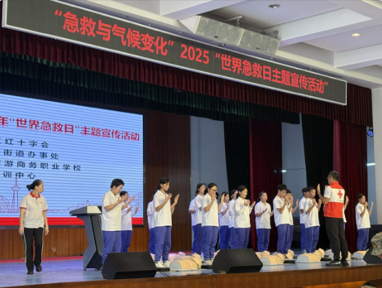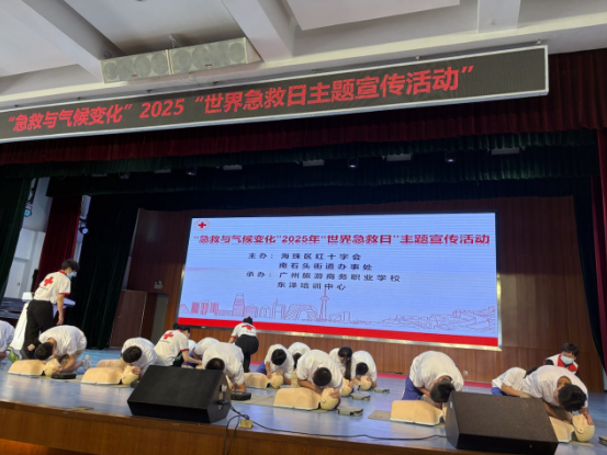 为进一步普及应急救护知识,增强广大师生的安全防范意识与自救互救能力,切实筑牢校园安全屏障,2025年9月2日,广州市旅游商务职业学校(简称“广州旅商”)以2025级新生军训为契机,联合南石头街道办事处、海珠区红十字会、南石头街道红十字会、南石头街道武装部及东泽培训中心等单位,共同组织开展应急救护知识普及培训系列活动。本次活动共吸引1500余名师生参加,取得了良好的宣传教育效果,校园安全防护能力得到有效提升。