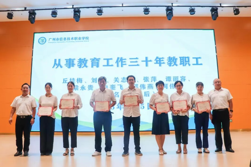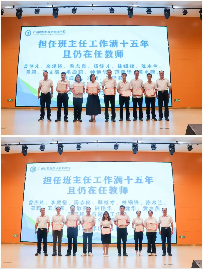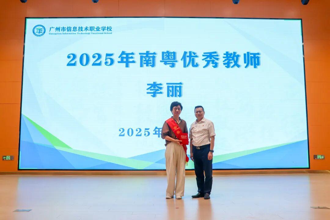 会议对2025年“南粤优秀教师”李丽及2024学年优秀教师、班主任进行了表彰。优秀教师代表表示,将坚守教育初心,以实际行动践行教育家精神,为培养高素质技术技能人才贡献力量。
