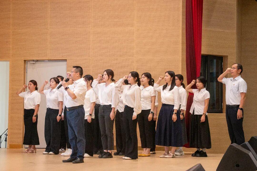 大会在庄严的国歌声中开幕。校党委书记王剑雄带领新入职教师进行宣誓,全体教职工共同重温人民教师誓词,坚定育人初心,强化使命担当。