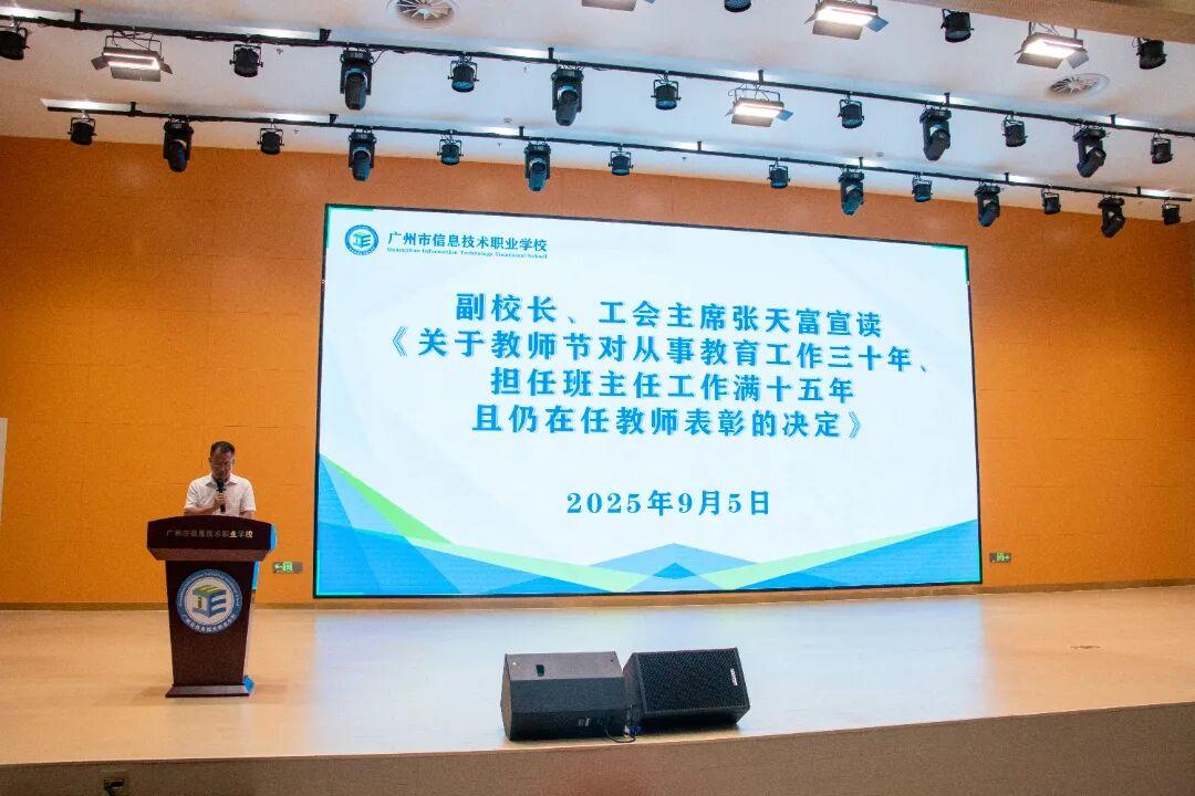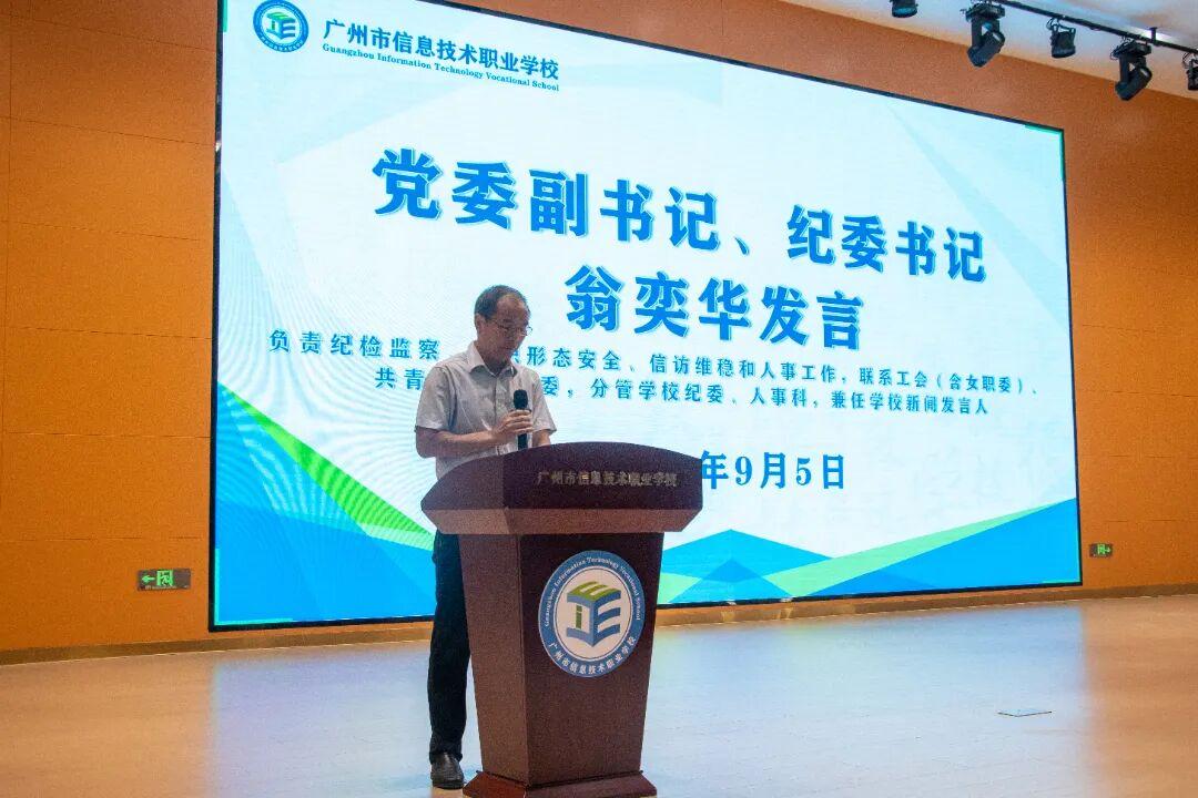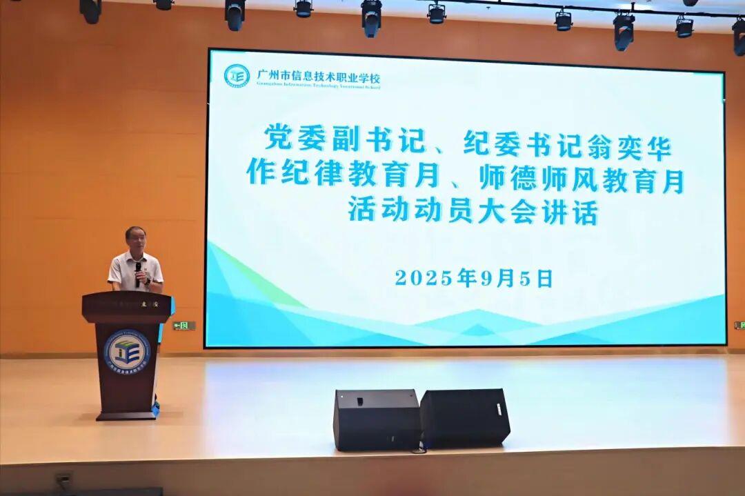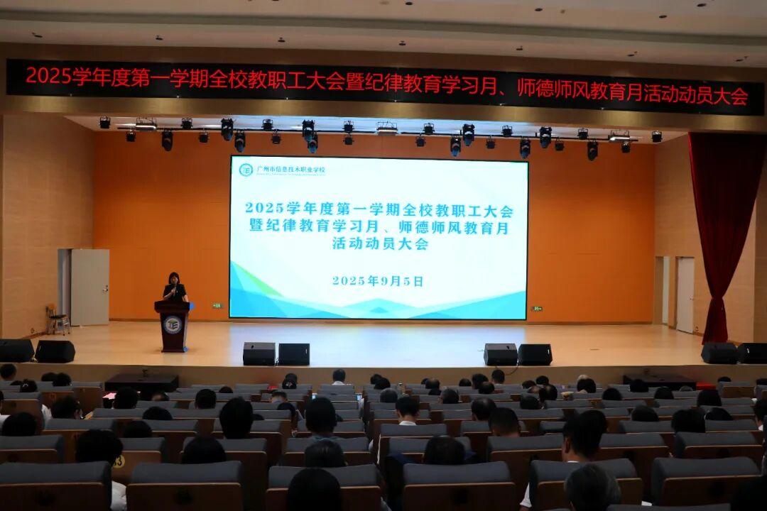 大洋网讯 9月5日,广州市信息技术职业学校(简称“广州信职”)在科教城校区与下塘西校区同步召开2025学年第一学期全校教职工大会,同时全面启动纪律教育学习月与师德师风教育月活动。会议由学校党委统一部署,全体教职工参会。