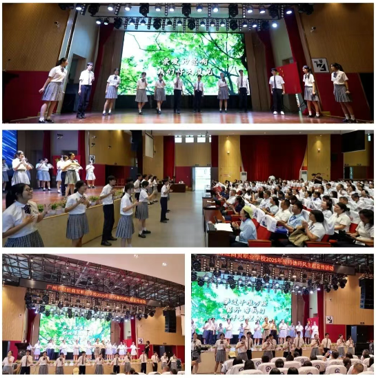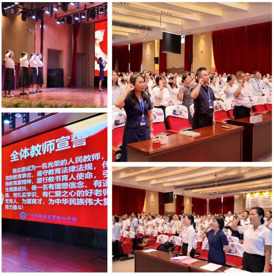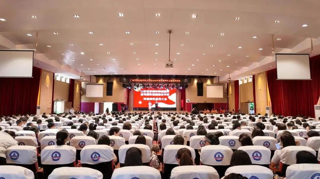 大洋网讯 9月5日,在第四十一个教师节来临之际,广州市财经商贸职业学校(简称“广州财商”)于龙归校区明德堂隆重举行“以教育家精神铸魂强师,谱写教育强国建设华章”师德师风宣传大会。学校领导班子成员及全体教职工参加会议,共同聆听榜样故事、重温教师誓词、凝聚育人共识,开启新学年奋进征程。