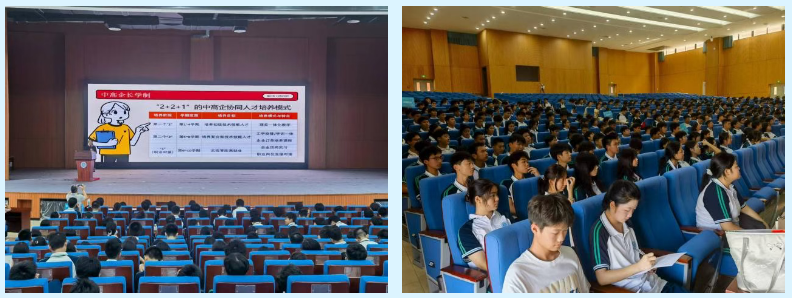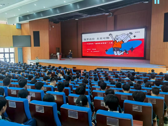 系主任吴海蓉以“筑梦造价 未来可期——开启你的‘建筑财富管家’之旅”为题,为工程造价专业500余名新生作专题报告。她从成才起点、学习平台、专业基石、课程体系、升学路径和职业前景等六个维度,全面阐释专业培养目标与未来发展,通过对比职业教育与普通教育差异,突出中职教育注重实践、强化应用的类型特色,并结合学校办学优势、优秀校友案例以及“三二分段”“职教高考”等多元发展通道,为学生指明成长路径。