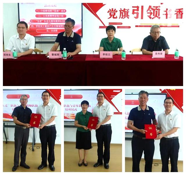 郑荣奕校长与三位“五老”代表出席活动,并为三位“五老”代表颁发结对证书