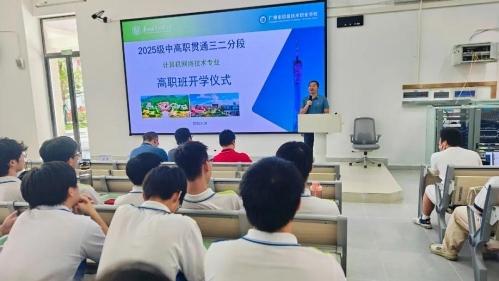 近日,广州市信息技术职业学校(简称“广州信职”)217名中高职贯通培养三二分段试点2025级高职班学子完成报到,并正式开启高职阶段学习。该校为此隆重举行开学典礼,广州职业技术大学信息工程学院副院长胡耀民、主任王伟,该校副校长方昆阳及师生代表共同出席。