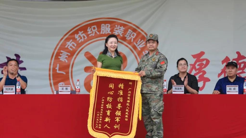 近日,广州市纺织服装职业学校(简称“广州纺校”)2025级新生军训总结表彰大会在天河、花都两校区同步举行。学校领导班子成员、花都区人武部教官及2025级全体师生共同参加了这一重要活动。