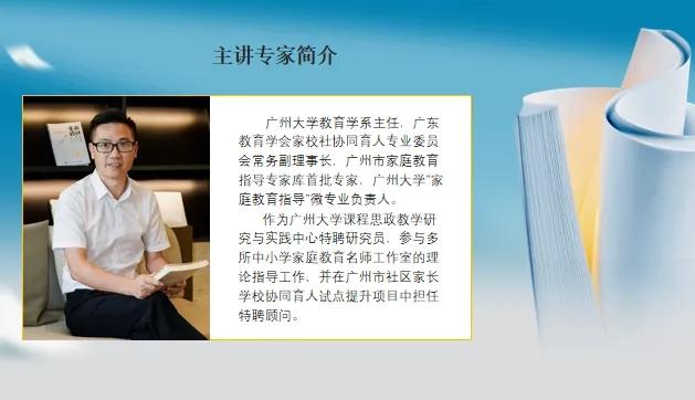 为全面提升中职教师科研能力,强化财商教育研究水平,广州市潘虹家庭教育名师工作室于2025年11月5日晚成功举办“中职学校德育课题研究的选题与实施”线上培训。本次培训特邀广州大学教育学系主任曾小军教授担任主讲,来自广州市财经商贸职业学校及兄弟学校的48名教师参与研修。