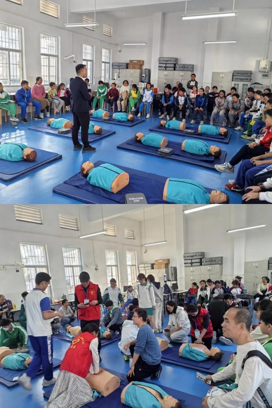 心肺复苏体验区气氛严肃而认真。在张功煌、陈锦浩老师和专业医护人员的指导下,亲子家庭两两结对,在模拟人上反复练习按压与人工呼吸。王三山老师的灭火器教学区则充满了“实战”气息,孩子们在模拟火场中学习判断与操作。