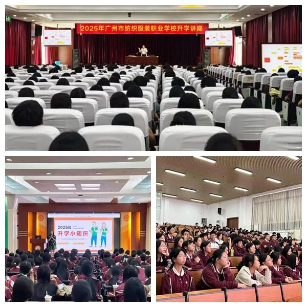 大洋网讯 近日,广州市纺织服装职业学校(简称“广州纺校”)分别在天河、花都两校区组织开展系列升学指导讲座,聚焦中职学生升学需求,系统解读升学政策与路径,助力学子提前规划深造之路,夯实专业基础、拓宽职业发展通道。